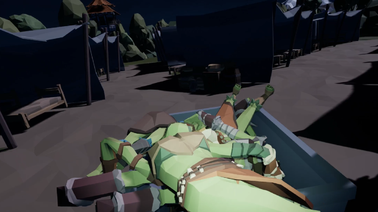 There are 38 miners who have fallen unconscious in the mine shafts below. Your goal is to get as many as possible out before the water level rises. You do this by getting on your mine cart and pumping the hand rail up and down to move down the tracks. You can change directions on the mine cart by pulling the side lever. At junctions, you can walk off your mine cart and pull the junction lever to switch tracks. At the elevator, you can pull the lever down/up to change floors. The mine cart will automatically brake for you if you stop pumping. Dive into the mines and when you find a fellow goblin, pick them up with grab controls ('Grab' button - not 'Trigger' on most VR controllers) and place them in your mine cart. When you've gathered as many as you can, come back to the surface and deposit the unconscious miners in various beds where they can receive medical attention.